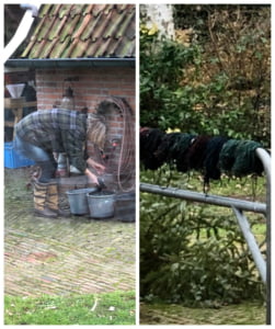 Na anderhalve dag doe ik het touw in plastic zakken en verwarm ik het nog even op 50 graden in de oven. En dan begint het spoelen, spoelen, spoelen en nog veel meer spoelen.