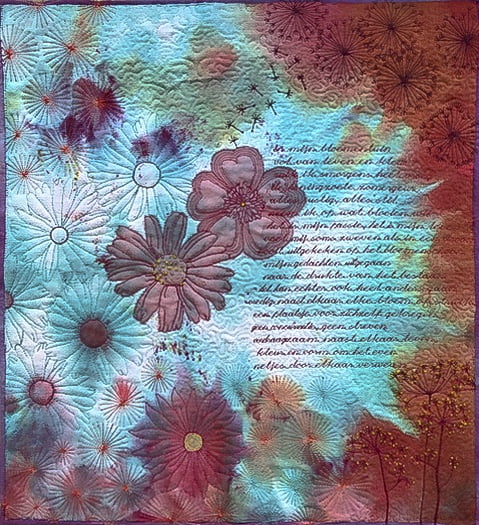 De Art Quilt commissie, bestaande uit Liesbeth Wessels, Pieternel Hol en mijzelf heeft in 2021 niet stilgezeten. Er is voor het eerst een Art Quilt wedstrijd georganiseerd. Omdat het nieuw is moet het wiel natuurlijk nog worden uitgevonden. Daar komt heel wat bij kijken, maar inmiddels loopt het goed en hebben we ook een ter zake kundige jury kunnen vinden. Het wachten is op de inzendingen van de leden! {dan kan hier}. In september werd een digitale inleiding door Marjolein van der Stoep georganiseerd. Er was veel belangstelling voor, meer dan honderd aanmeldingen. Omdat een aantal mensen toch niet hadden kunnen inloggen, is de opname van de inleiding, met toestemming van Marjolein, later nog een keer herhaald. Ook organiseerden we een Meet en Greet die in het nieuwe jaar op 5 februari gepland staat.
