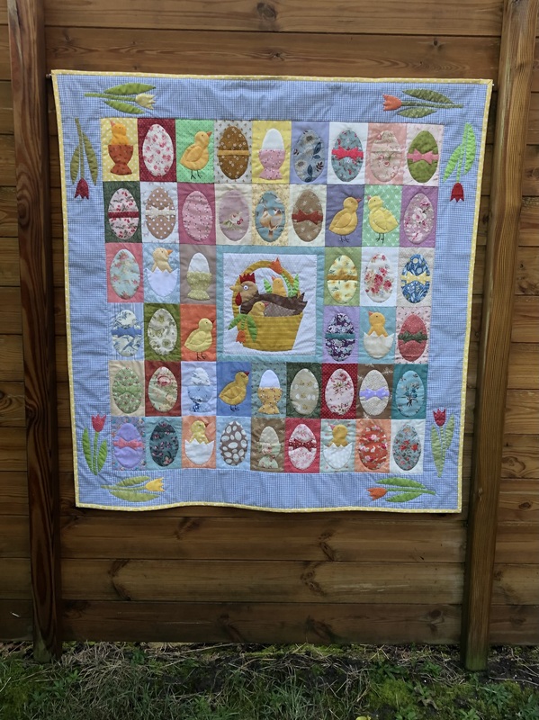 Mijn eigen favoriete quilt is de laatste grote quilt (‘Flower power’) die ik gemaakt heb, alhoewel ik de overhemdenquilt ook heel mooi vind. En ‘Blij ei’ is toch ook wel heel leuk. Ik kan niet kiezen!