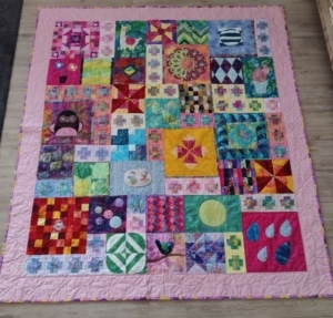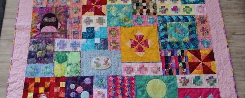 Ik quilt ondertussen misschien al wel 15 jaar of langer en ben uiteraard lid van het Quiltersgilde. Tot dan toe had ik vooral voor mezelf en mijn kinderen quilts gemaakt (quilt voor mijn zoon linksonder en voor mijn dochter rechtsonder) en ik wilde ook wel wat meer doen voor en met quilters om me heen.