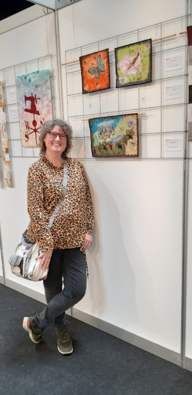Ik heb ook een paar keer meegeholpen bij een Algemene Tentoonstelling en bij een textielfestival. Het is heel leuk om met dit soort activiteiten mee te helpen, omdat je meer mensen leert kennen die ook allemaal quilten. En toch zijn het iedere keer weer heel verschillende mensen die je ontmoet. Ik kan gerust alleen naar een tentoonstelling of beurs, want ik kom altijd bekenden tegen. Als ik ooit niet alleen naar zo’n evenement ga, is degene met wie ik ben mij ook steeds kwijt. Ik heb ergens weer iemand gezien waar ik echt even naar moet gaan zwaaien, of ik ben al weer drie rijen achter, omdat er steeds bekende mensen voorbij lopen die ook naar mij willen zwaaien. Echt heel leuk, ik voel me vaak een koningin tijdens een expositie.