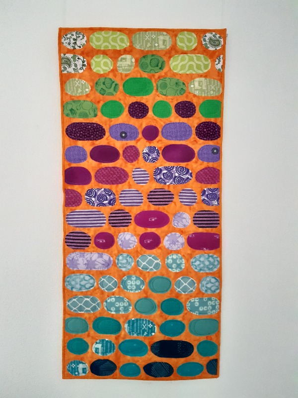 Net als de meeste mensen quilt ik niet zo veel als ik zou willen. Maar op zich heb ik er wel meer tijd voor dan de meeste mensen. Eigenlijk ben ik ook best veel bezig met quilten, doordat ik thuis lesgeef, en in het dorp in het gemeenschapscentrum. Ik ben bij twee quiltbee’s en morgen ga ik bij een derde clubje kijken. In die tijd praat ik natuurlijk heel veel over quilten, maar komt er navenant niet zo veel uit mijn handen. En toch heb ik vorig jaar iedere maand minstens 1 quilt afgemaakt. Ik quilt niet in 1 genre, ik vind het allemaal leuk. Traditioneel, modern, art, kom maar op.