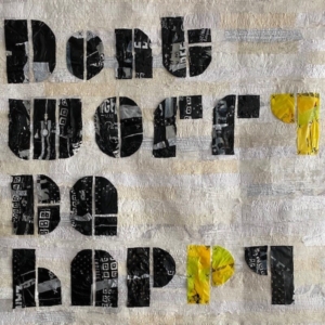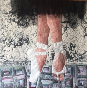 Deze heb ik gemaakt n.a.v. een thema, nl. “Dansen met je gebreken”. Hij is gemaakt met zelfgeverfde stoffen en daarin ook nog een traditioneel patroon erin (log-cabin). Niets is wat het lijkt, de schoonheid van ballet heeft ook verborgen pijn.
