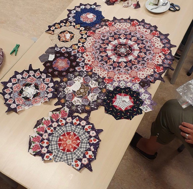 Ook ben ik bezig aan een project met de hand, namelijk een ontwerp van Willyne Hammerstein, de ‘La Passacaglia’ quilt, maar dan uitgevoerd in Spakenburgse klederdrachtstoffen.