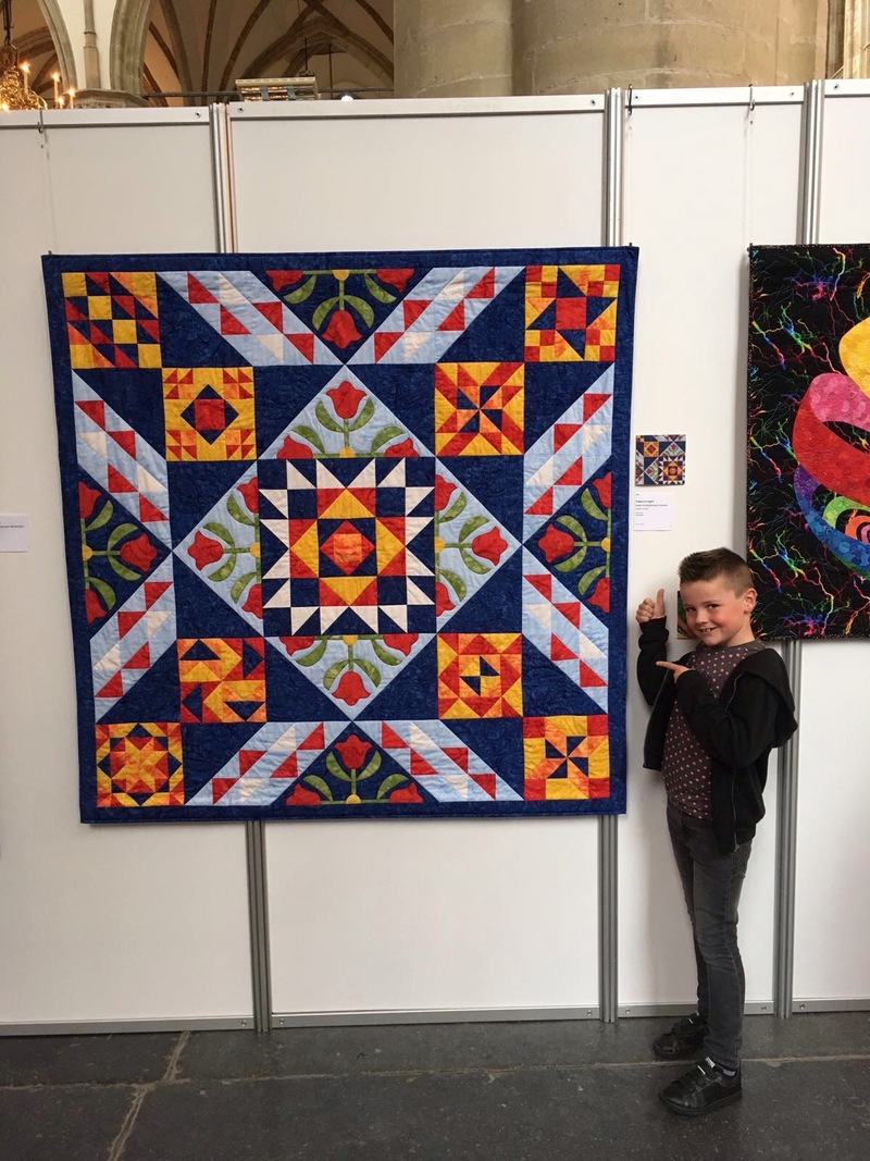 De quilt mocht hangen op de ATT in Alkmaar in 2017 en Jaimy kwam natuurlijk ook kijken. Tot mijn verrassing werd van de quilt ook nog een kaart gemaakt. Dus deze quilt is met voorsprong mijn favoriet.