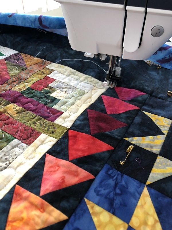 Op dit moment ben ik het laatste deel aan het quilten van de mysteryquilt uit het Quiltnieuws van 2017. Ik ben altijd een beetje huiverig om vanaf het begin af aan mee te doen met een mysteryquilt omdat ik geen idee heb of al dat werk ook aan het eind leidt tot een leuke quilt. Maar toen ik het eindresultaat van deze mysteryquilt zag was ik verkocht. Nu nog even tijd maken voor de laatste loodjes.