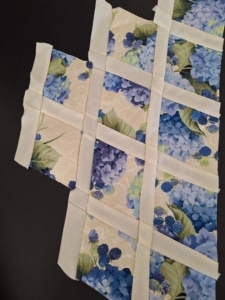 Nu ben ik net begonnen aan een nieuwe quilt, een extra project. Omdat we dit jaar bezig zijn met Jane Austen heb ik een grote lap met hortensia’s in ruiten geknipt om haar quilt te maken. Gewoon om te ervaren hoe dat werkt, hoe dat er uit ziet. Het patroon van haar Coverlet quilt is nog altijd gratis te downloaden. Ik kijk wel hoever ik kom met mijn stof, het is niet genoeg voor de hele quilt.
