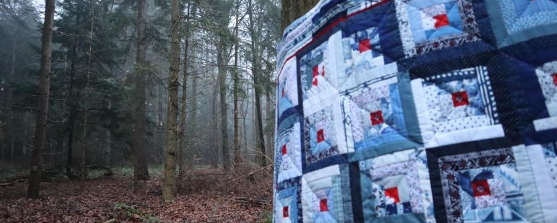 Ik heb de Amerikaanse eik een Krachtdekenquilt gegeven. Ik wilde de boom laten weten dat ze goed is zoals ze is. En dat ze mag blijven. Ook geeft de Krachtdeken extra kracht en warmte deze komende winter.