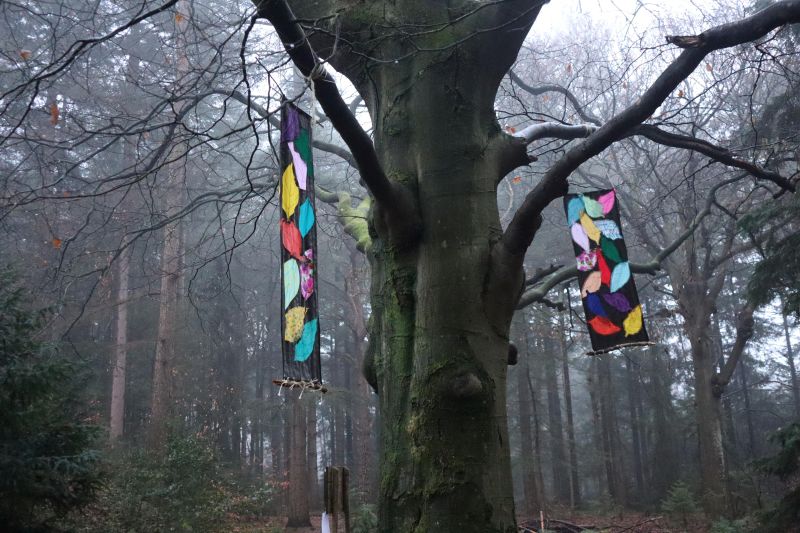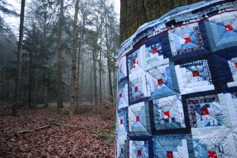 Ik heb de Amerikaanse eik een Krachtdekenquilt gegeven. Ik wilde de boom laten weten dat ze goed is zoals ze is. En dat ze mag blijven. Ook geeft de Krachtdeken extra kracht en warmte deze komende winter.
