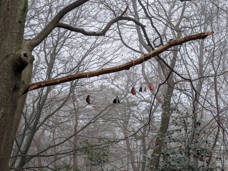 Het buiten ophangen van je werken komt ook met een zekere kwetsbaarheid. Het kan zijn dat de werken stukgaan of meegenomen worden. Dat is met een deel helaas ook al gebeurd. (Link naar info over vernielde werken) . Deze kwetsbaarheid is onderdeel van het verhaal dat ik wil vertellen.