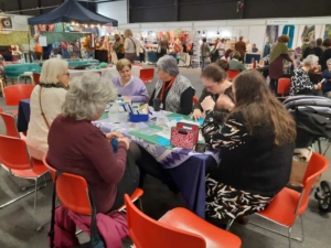De make & take tafel bood een moment van rust op de drukke beursvloer. Het was niet alleen een plek om creatief aan de slag te gaan, maar ook een fijne gelegenheid om kennis te maken met potentiële quilters én onze trouwe leden die ons met veel plezier kwamen begroeten. We hebben volop genoten van de mooie, inspirerende gesprekken en de enthousiaste reacties.