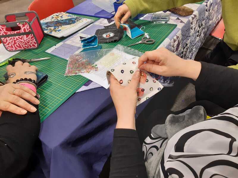 De make & take tafel bood een moment van rust op de drukke beursvloer. Het was niet alleen een plek om creatief aan de slag te gaan, maar ook een fijne gelegenheid om kennis te maken met potentiële quilters én onze trouwe leden die ons met veel plezier kwamen begroeten. We hebben volop genoten van de mooie, inspirerende gesprekken en de enthousiaste reacties.