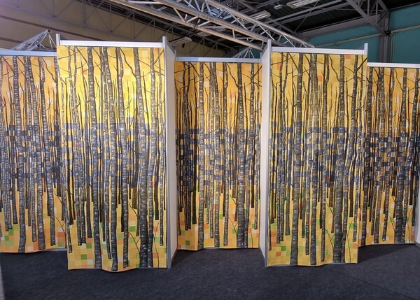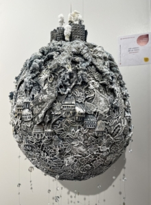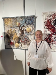 Onze absolute favoriet van de hele show! Quilts en Stro-borduurwerk van deze kunstenaars uit de Oekraïne. Ongelofelijk mooi en heel bijzondere technieken. Bijzonder detail: in 2014 heeft zij kledingstukken gemaakt voor de priester met stroborduursels, aangezien de oorspronkelijke kledingstukken bij aanvallen van de Russen vernietigd waren.