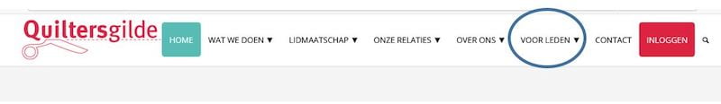 Als je de volgende keer vanaf de website van het Quiltersgilde inlogt, dan kun je de rode knop gebruiken (alleen desktop pc). Op een tablet of telefoon kun je via het menu naar het tabblad “Voor leden” en daar inloggen.