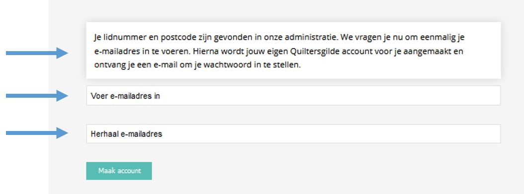 Het aanmaken van een account voor leden van het Quiltersgilde gaat op de volgende manier: