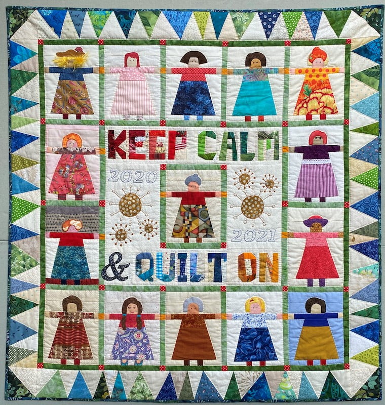 In Quiltnieuws 151, maart 2022, staat een quilt waarop 14 vrouwen in een kring elkaar de hand geven. In het midden staat de tekst “Keep Calm & Quilt on!”. Quilt on na deze inspiratie rondom gastvrijheid.