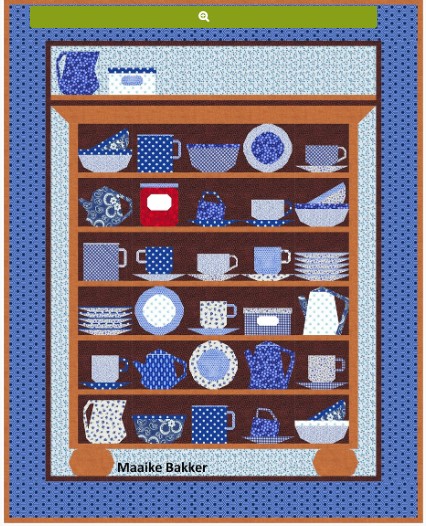 Mijn tafel dek ik voor mijn gasten met mijn ´mooie´ servies. Door het patroon van pakket ‘Hollands servies’ van Maaike Bakker () kom ik op het idee om een servieskast te vullen met mijn ´mooie´ servies, boerenbont.