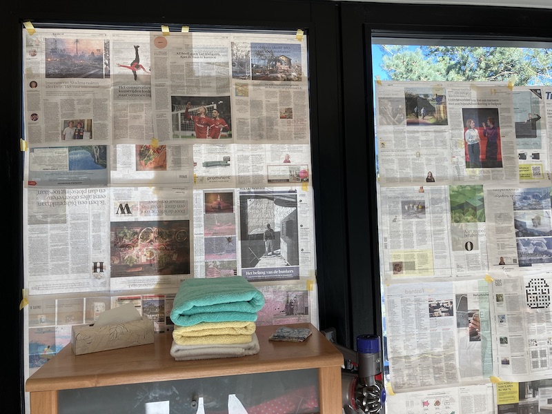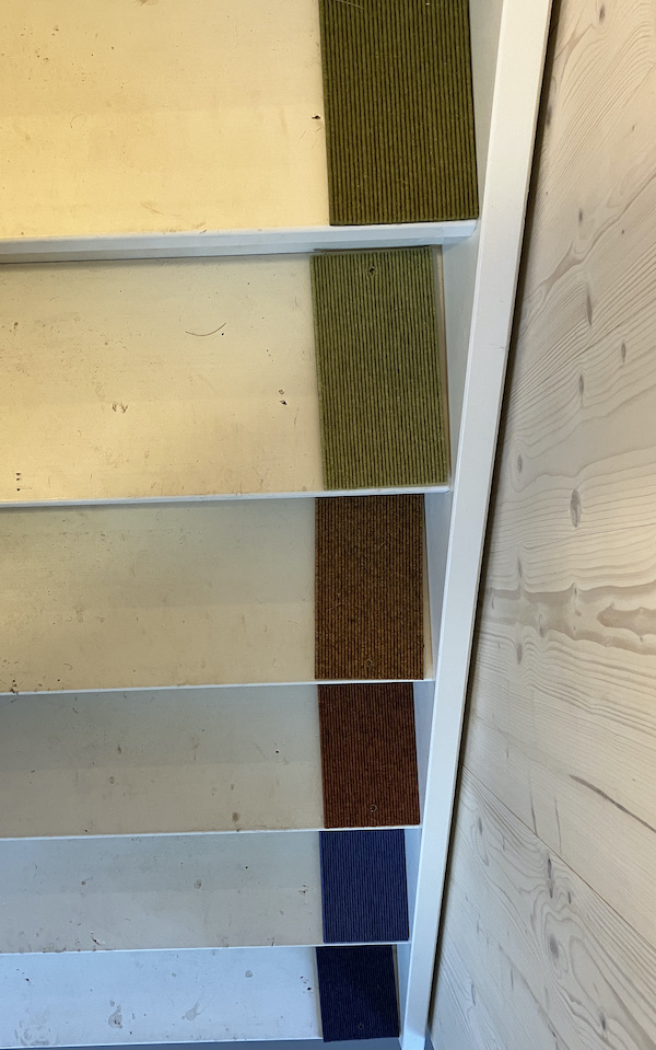 In een nieuwbouw huis zijn er qua kleurenpalet veel beslissingen te nemen. En dat is natuurlijk ook een creatief proces, al is het resultaat geen quilt maar een mooie trap, vloer of gordijn. Daarin maak ik ook wel gebruik van mijn kleurenkaart die ik bij het kiezen van stoffen voor een quilt ook gebruik. Wordt de trap groen met een lichtgroene knipoog? Of paars met een lila accent? Of oranje? We zijn er nog niet uit. En voorlopig hebben we krantengordijnen….
