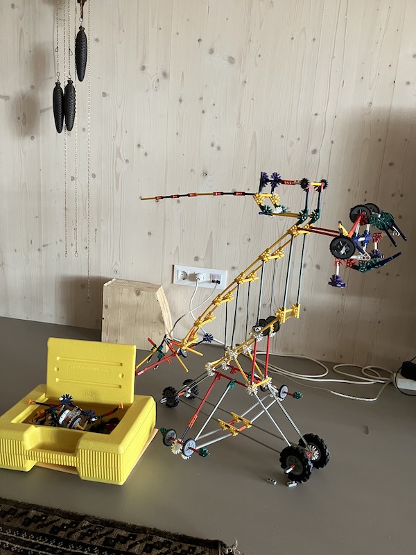 Ik heb wel gebreid, dat geeft rust en dat breiwerk kan ik makkelijk even oppakken. Hoewel ik nu al aan de derde versie van een trui bezig ben met dezelfde wol. Dus ook twee keer uitgehaald, omdat het me niet beviel. En het bouwen van hijskranen van KNEX samen met onze kleinzoon is een genot. Een fantasie die geen grenzen kent!
