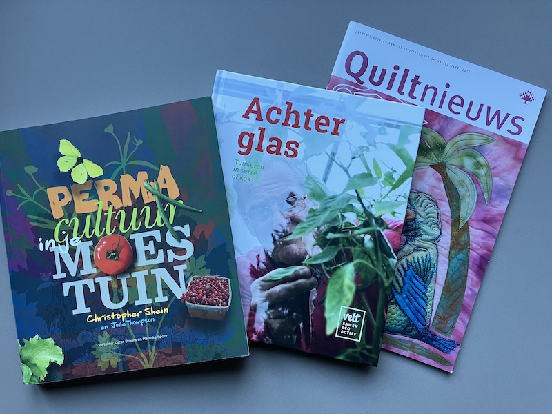 En onverwachts kreeg ik van collega quilter Margreet Michel hier uit Amersfoort twee tuinboeken, waar ik alle informatie over moestuin en kas in kan vinden. Quilters zijn delers en dus ook met andere dingen dan lapjes!