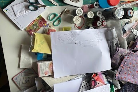 Wel neem ik mijzelf af en toe wat voor. Dat was om te beginnen mijn werkplek op te ruimen. Mijn werktafel lag voor de helft vol met ideeën op papier, nog af te maken projectjes, klosjes garen, restanten van vorige werkjes en spullen waarvan ik wist dat ik ze had en niet meer kon vinden.