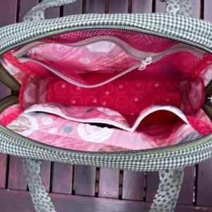 Omdat ik het zonde vond om die uitwerking alleen voor mezelf te houden, ben ik workshops gaan geven (bijna een cursus) om die inzichten – en het maken naar (Engels) patroon door te geven. Naar mijn mening is het dus heel goed mogelijk om de ‘A place for Everything’ (waar best veel verschillende technieken in zitten) onder begeleiding te maken als je nog nooit eerder een tas maakte. En je voelt je zo trots als je dan zo’n mooi koffertje met binnenbladen hebt gemaakt! En ik voel trots voor mijn workshops deelnemers! Zo leuk!