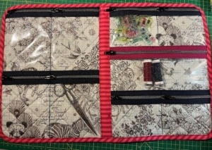 Een handig koffertje met binnenbladen met veel vakjes naar patroon ‘A place for Everything’ van byAnnie waarbij ik alle stof heb ingevuld met fat quarters, een heel gepuzzel.