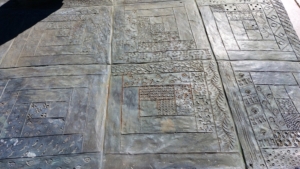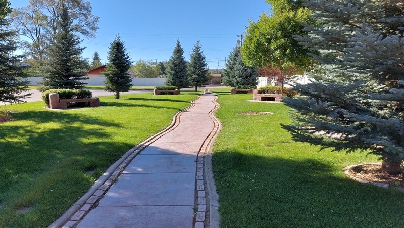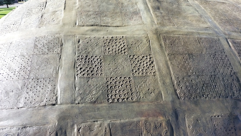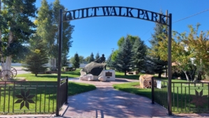 Vorig jaar waren wij op vakantie in Amerika. We maakten daar met een gehuurde auto een prachtige tocht door het Noordwesten van het land, van Salt Lake City naar Yellowstone, van Yellowstone naar de Grand Canyon en vandaar weer terug naar Salt Lake City. Op de terugweg naar Salt Lake City overnachtten we in een dorpje genaamd Panguitch, gelegen in Utah. We keken een beetje rond wat er in het dorpje te doen was. Er was een quiltwinkel, maar die was gesloten op zaterdagavond en de volgende dag – zondag – ook. Terwijl we een beetje rondliepen, ontdekten we ineens het Quilt walk park.