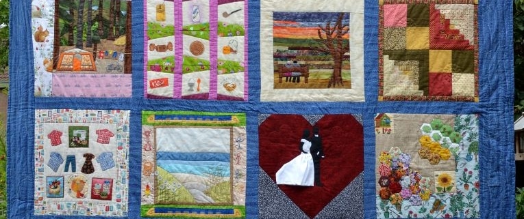 Marry Roeland quilt al jaren. Ze maakte voor de kleinkinderen quilts voor op bed. Op het bed van (o)pa en (o)ma lag echter geen quilt. Dus in het jaar dat ze 60 jaar getrouwd zouden zijn, zijn we als familie aan de slag gegaan met een herinneringsquilt.