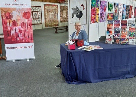 Onze bijdrage was de tentoonstelling van de quilts gemaakt voor Connected In Red. Leden die mee wilden doen kregen in januari van dit jaar allemaal een fat quarter van dezelfde rode stof opgestuurd, voorwaarde was dat er een quilt werd gemaakt met een afmeting van 80 bij 100 centimeter en dat (een gedeelte van) deze stof op de voorkant werd gebruikt. Dit leverde in totaal 70 quilts op waarvan er 56 mochten worden opgehangen in de Elzas, dit leidde tot het volgende avontuur.