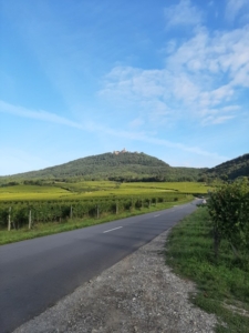 In de ochtend langs de wijngaarden op weg naar de expositie.