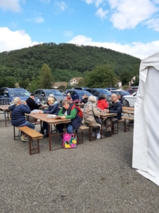 Op 10 september vertrokken we al vroeg richting Elzas, immers het was vanaf Dordrecht, ons gezamenlijke vertrekpunt nog ruim 600 kilometer. Gelukkig ging de reis heel voorspoedig en na een korte stop, omdat het navigatiesysteem van de auto aangaf dat het tijd was om te stoppen voor koffie, waren we om half 4 op de plaats van bestemming. We hebben ons daar gemeld bij de organisatie en kregen onze spullen. Daarna gingen we ons appartement zoeken, dat was ongeveer 40 kilometer buiten Sainte-Marie-aux-Mines. Nu is in Nederland 40 kilometer niet zo ver, maar waar we niet aan gedacht hadden was het hoogteverschil. We moesten een beste bult over, 931 meter. En aangezien je niet recht omhoog kunt betekent dit heel veel haarspeldbochten.