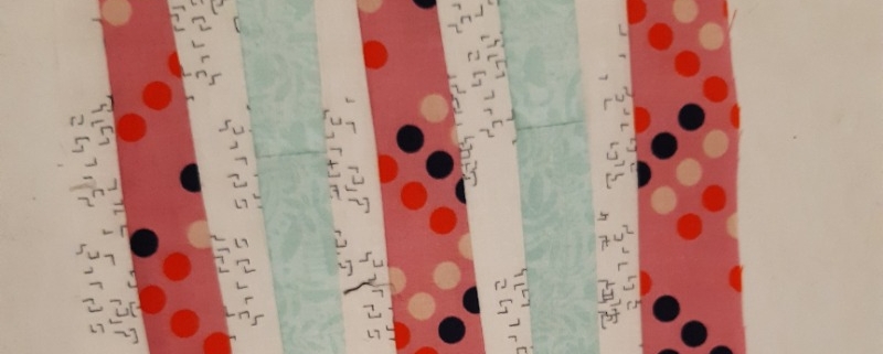 Tijdens het naaien blijven mijn blokjes niet rechthoekig, omdat ik zonder liniaal gesneden heb en niet kaarsrecht. Dat geeft niks, want ik kan de blokjes later nog rechthoekig maken. Hé, ik heb maar acht blokjes. Nou, dan start ik dus met acht. Het maakt niet uit, want het is altijd goed. Na het strijken maak ik de blokjes rechthoekig. Rechthoekige blokken is namelijk een stuk gemakkelijker wanneer ik over een tijdje, bijvoorbeeld over een maand of twee, blokjes aan elkaar ga naaien, tot een top. Nu gewoon lekker snijden en naaien. De komende tijd maak ik af en toe acht tot tien blokjes per keer met de bovengenoemde lijnvariaties. Over een maand of twee ga ik met alle blokjes die ik dan heb gemaakt, een spannende top puzzelen. Misschien komen alle blokjes in de top, misschien niet. Doe je mee?