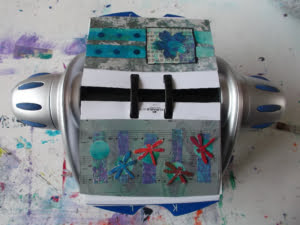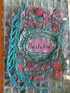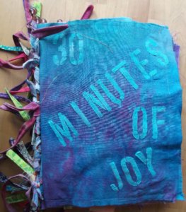 Verder ben ik gestopt met de half uur collages. Van een gedeelte van die collages heb ik een boek gemaakt. Het boek heet ’30 minutes of joy’. En nu maak ik piepkleine collages van papier. Mijn man heeft ooit voor zijn werk een Rolodex gekregen. Zo’n apparaat waar je al je contacten in kunt bewaren op kleine blaadjes die je er ook zo uit kunt halen. Nooit gebruikt, dus die had ik ingepikt. En nu maak ik op al die heel kleine blaadjes collages. Een oefening in creativiteit. En volgens mij zitten er meer dan 100 blaadjes in, dus ik kan even vooruit.