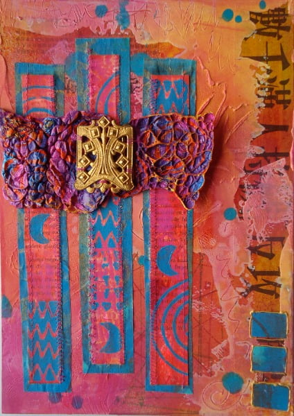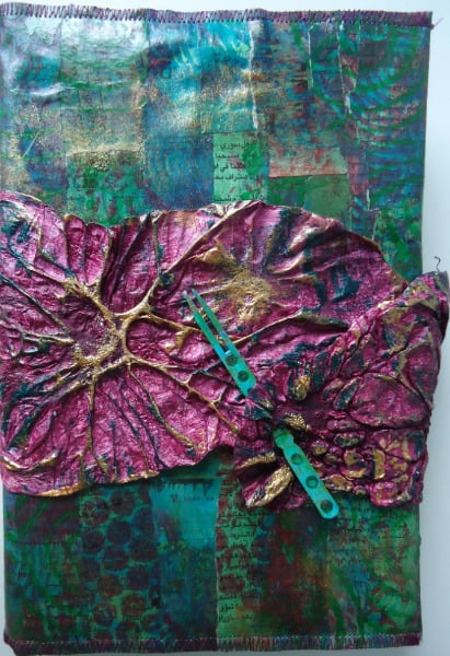 Sinds de corona in het land is kan ik geen les meer geven. In mijn atelier kunnen hooguit 2 mensen zijn met inachtneming van de coronaregels en dat is gewoon te weinig. Er liep een jaarcursus Artjournal op textiel met 6 dames op leeftijd toen corona in het land kwam, dus die stopte en toen het in september weer zou mogen waren de dames die in de doelgroep vallen te huiverig om weer te beginnen. Ik had in het voorjaar via internet (op mijn workshopblog) lessen voor ze gemaakt, maar nu besloten we het lesgeld voor de helft terug te betalen en helemaal te stoppen.