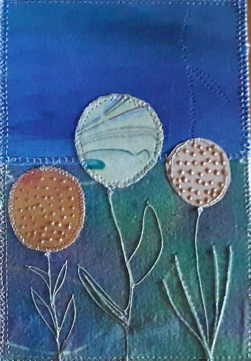 Een van de initiatieven is om kaarten te maken; deze worden naar mede quilters gestuurd worden met een lieve groet.