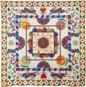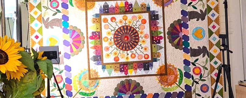 Er ontbreekt alleen nog een label. Ik wil nog een leuk ontwerp maken voor de borduurmachine om in het label te verwerken. Dat is weer een leuk klusje voor in de zomervakantie. Daar komt in ieder geval op te staan dat ik er van 2017-2024 aan heb gewerkt, dat het patroon van Sarah Fielke is en dat ik ‘m met de hand heb geappliqueerd en verder met de machine in elkaar heb gezet en doorgequilt. Zo, en dan is ‘ie klaar!