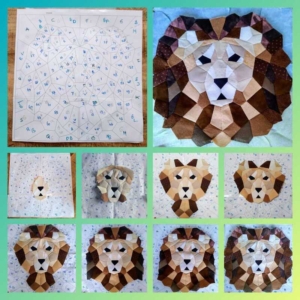 Ik wilde de leeuw die Violet Craft ontwierp in een ander formaat uitvoeren. Ik moest het zelf tekenen. Het kostte me heel wat tijd voordat het me in EQ8 uiteindelijk lukte. Pas daarna ontdekte ik dat het met de Engelse Paper Piecing (EPP) methode gemaakt moet worden. Oeps, deze methode had ik altijd vermeden. Maar ja, als ik de leeuw echt wilde maken…. Nieuwsgierig? Lees dan verder.