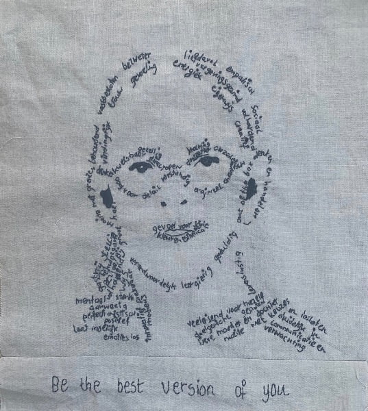 Ahhh ja, ik maak een ode aan hen en maak hun zelfportretten. Een zelfportret van mijn beste vriendinnen, mijn quiltvriendinnen, mijn jaarclub, mijn leeskring, mijn knutselclub… Alle vriendinnen die belangrijk zijn in mijn leven. Of ik ze nu elke week zie of 1x per jaar… Vriendschap beperkt zich voor mij niet tot zien…