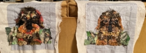 opnieuw aan de slag…daar ging ik weer, stofjes knippen en knippen, nu kan ik meer in stofjes zien dan ooit… een bloemblaadje was opeens een bosje haren… maar ogen…zo ontzettend moeilijk voordat je daar iets van gemaakt hebt…uren en uren… maar ben tevreden…