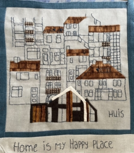 Op dit blok bleef ik hangen… verzin ondertussen heel wat andere quilts gemaakt en echt afgemaakt maar dit blok… ik wilde teveel denk ik…het zat in mijn hoofd maar kwam er niet uit…ik wilde namelijk alle huizen waar ik in heb gewoond en waar ik in ga wonen…eerst maar even bouwen dan :).
