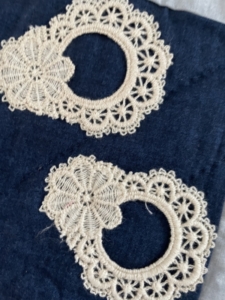 Ik wil ook fotootjes…ook daar moet iets op verzonnen worden… Ik vond dit mooie kant… dat is perfect ervoor… ik laat het aan de bovenkant open zodat ik straks fotootjes kan printen op speciaal papier voor foto’s op stof…en dan kan ik ze er zo inschuiven…