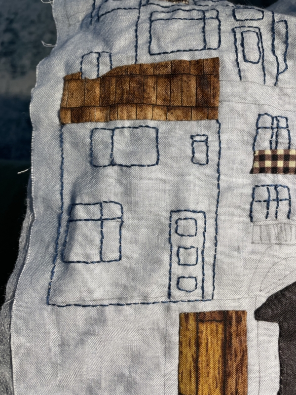Op dit blok bleef ik hangen… verzin ondertussen heel wat andere quilts gemaakt en echt afgemaakt maar dit blok… ik wilde teveel denk ik…het zat in mijn hoofd maar kwam er niet uit…ik wilde namelijk alle huizen waar ik in heb gewoond en waar ik in ga wonen…eerst maar even bouwen dan :).