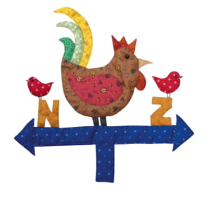 Het einde van de lockdown is nog niet in zicht. Gelukkig hebben we te eten, een dak boven ons hoofd en is het warm in huis. Het gezegde ‘Oost, west, thuis best’ is in deze tijd van besmettingsgevaar wel toepasselijk. De kleurige haan op de windwijzer geeft een vrolijke noot aan dit blok. Nergens beter dan thuis met een kopje thee en een quiltwerkje.