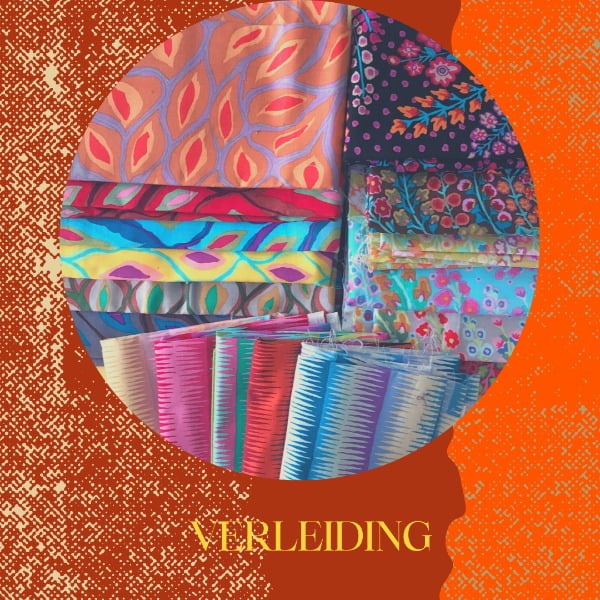 Verleidingen voor een quiltster zijn er velen. Lopend over een beurs is het toch wel heel moeilijk om weerstand te bieden aan al die bakken vol mooi opgevouwen stofjes, roepend “neem mij, nee mij”!!