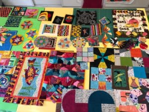 Ik heb letterlijk oud werk versneden, oude werkstukjes samengevoegd tot nieuw en oud werk in een nieuw jasje (in dit geval rokje) gestoken. Ook werk dat ik, o.l.v. Carola Mokveld tijdens haar masterclass Quilten gemaakt had maar waarvan de expositie niet kon doorgaan, staat nu klaar om getoond te worden.