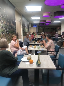 Er werd gewinkeld bij Elly Prins, genoten van de voortreffelijk verzorgde lunch door de Schakel. De meeste deelnemers zien we volgende keer wel terug denken we. En van 1 dame weten we zeker dat ze dan een kussen meeneemt, dan hoeft ze niet meer op een toren van 3 stoelen te zitten……