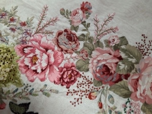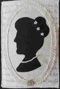 Jane Austen heeft samen met haar zus een coverlet gemaakt. In het midden daarvan zit een blok Broderie Perse. Vaak worden figuren daarbij met een heel klein randje achtergrondstof uitgeknipt en gefestonneerd op een ondergrond.