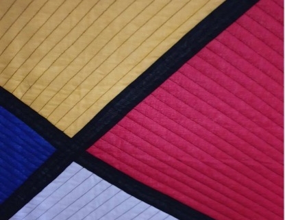 Nummer 1 gequilt in rechte lijnen met garens in de kleur van de stof.