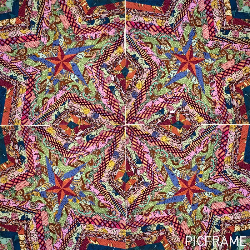Na twee keer de blokken uit elkaar en weer opnieuw in elkaar te hebben gezet, geloof ik dat deze kleuren combinatie het beste is. Er zitten veel roze tinten in en dat is best wel buiten mijn comfort zone, maar ook heel leuk om mee te werken. Het lijkt wel een zuurstokken parade! Met behulp van de app Picframe kan ik zien hoe de quilt er uit zou komen te zien als ik alle blokken op deze manier maak en steeds een kwart slag draai. Het blijft een benadering omdat de quilt er in het echt toch iets anders uitziet dan op de foto.